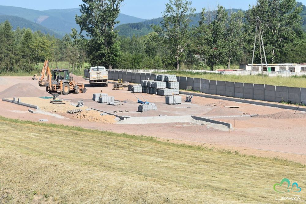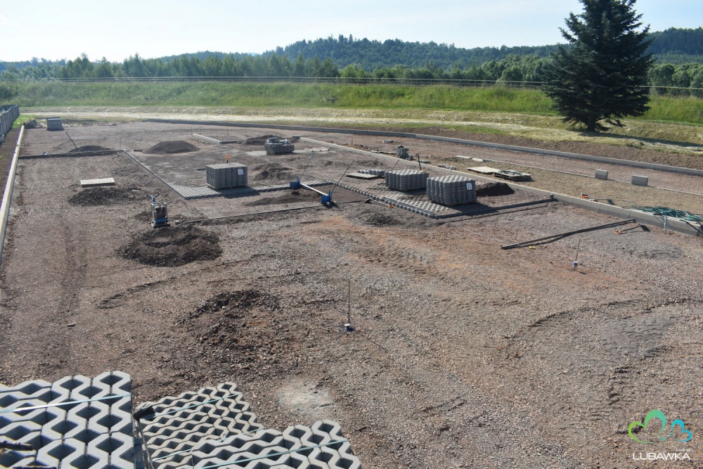 Zgodnie z harmonogramem robót wykonywany jest parking w Miszkowicach. W obecnej chwili są wykonywane prace związane z układaniem płyt ażurowych w części parkingu.
