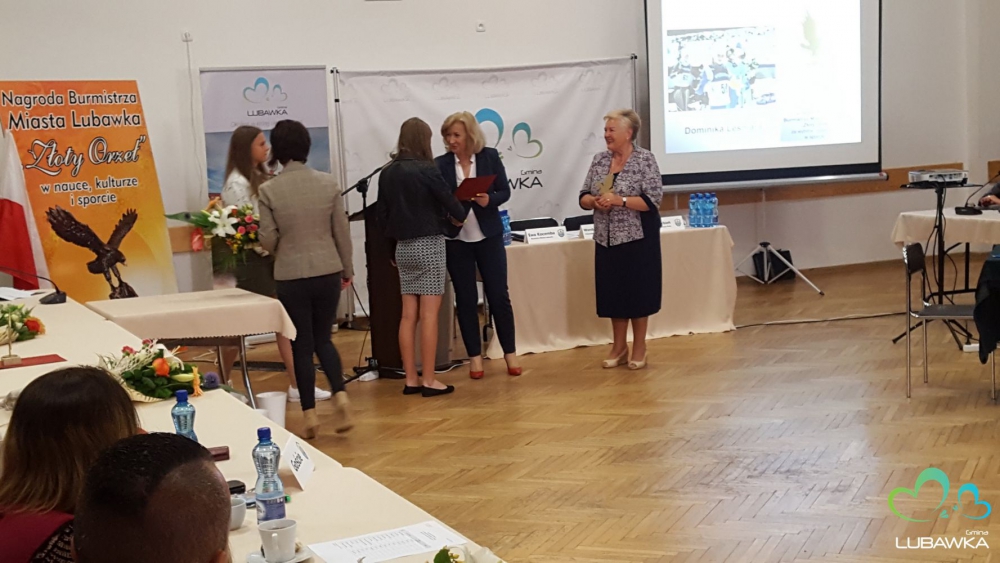 "Złoty Orzeł" dla uczennicy kl. II Gimnazjum im. Żołnierzy Sybiru w Zespole Szkół Publicznych w Lubawce Dagmary Telegi, Laureatka Nagrody Burmistrza Miasta Lubawka "Złoty Orzeł" za wybitne osiągnięcia w nauce.