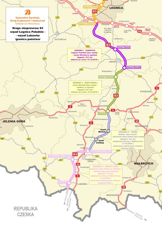 Na drugą połowę 2021 r. zaplanowano zostało oddanie do użytku przygranicznego odcinka S3 od węzła Kamienna Góra Północ do węzła Lubawka o długości około 15,3 km.