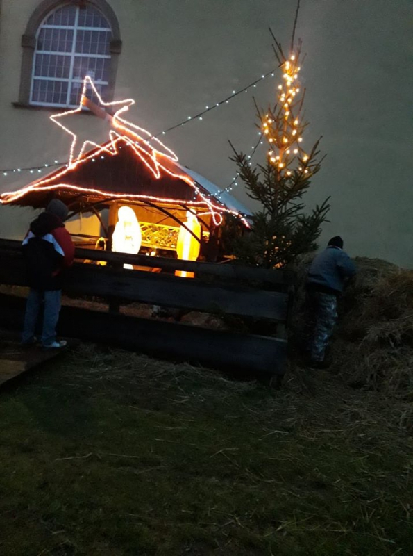 Przy kościele pod wezwaniem Świętej Rodziny od kilku dni stoi żywa szopka. To wspólna inicjatywa mieszkańców Chełmska Śląskiego. Obok figur św. Rodziny można zobaczyć prawdziwe zwierzęta.
