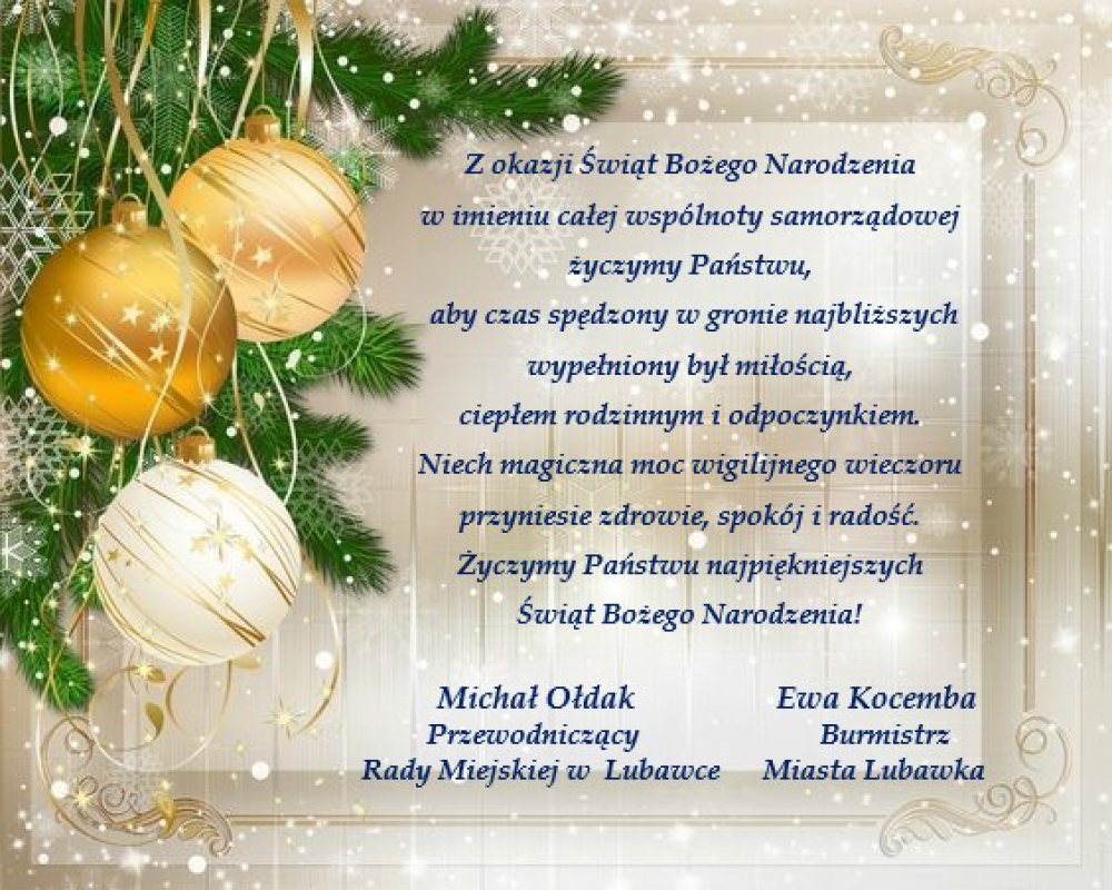 Życzenia z okazji Świąt Bożego Narodzenia! Spokojnych i radosnych Świąt Bożego Narodzenia! Galeria zdjęć Marlena Popławska Organizacyjny Data wydarzenia: 2019-12-17 Stworzony: 2019-12-17 09:31 Edytowany: 2019-12-17 09:33