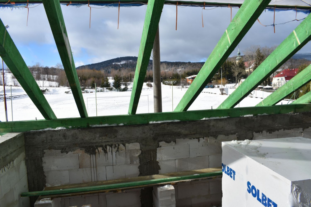 Aktualnie wykonywana jest konstrukcja dachu, rozpoczęto także prace elektryczne.
