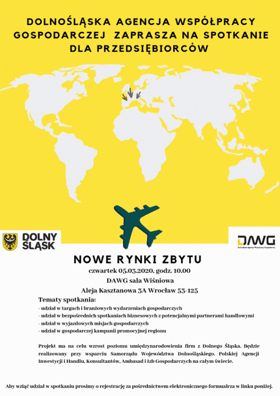 Dolnośląska Agencja Współpracy Gospodarczej zaprasza na spotkanie dla Przedsiębiorców: NOWE RYNKI ZBYTU