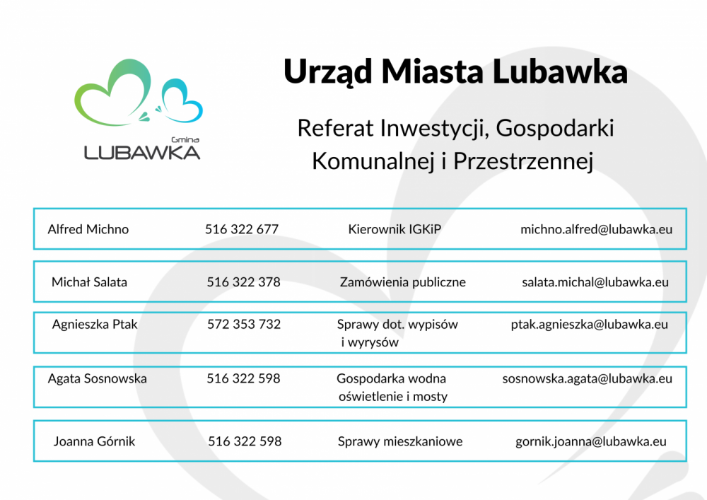 W razie spraw pilnych, nagłych możliwy jest kontakt bezpośredni Interesanta z urzędnikiem - osobą merytorycznie odpowiedzialną, jednakże po wcześniejszym, telefonicznym umówieniu spotkania.