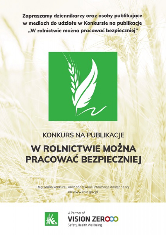 XXVII edycja konkursu, zainaugurowana przez Prezes Kasy dr Aleksandrę Hadzik 11 marca br. podczas uroczystego podsumowania poprzedniej edycji, w głównej mierze ma na celu popularyzowanie, od 30 lat upowszechnianych przez KRUS, sposobów zapobiegania wypadkom przy pracy w gospodarstwie rolnym oraz rolniczym chorobom zawodowym. Zgodnie z zatwierdzonym regulaminem, warunkiem udziału w Konkursie jest opublikowanie od 1 stycznia do 31 grudnia 2021 r. i przesłanie na adres Kasy Rolniczego Ubezpieczenia Społecznego, co najmniej jednej publikacji spełniającej wymogi regulaminu. Zapraszamy do udziału i życzymy powodzenia.