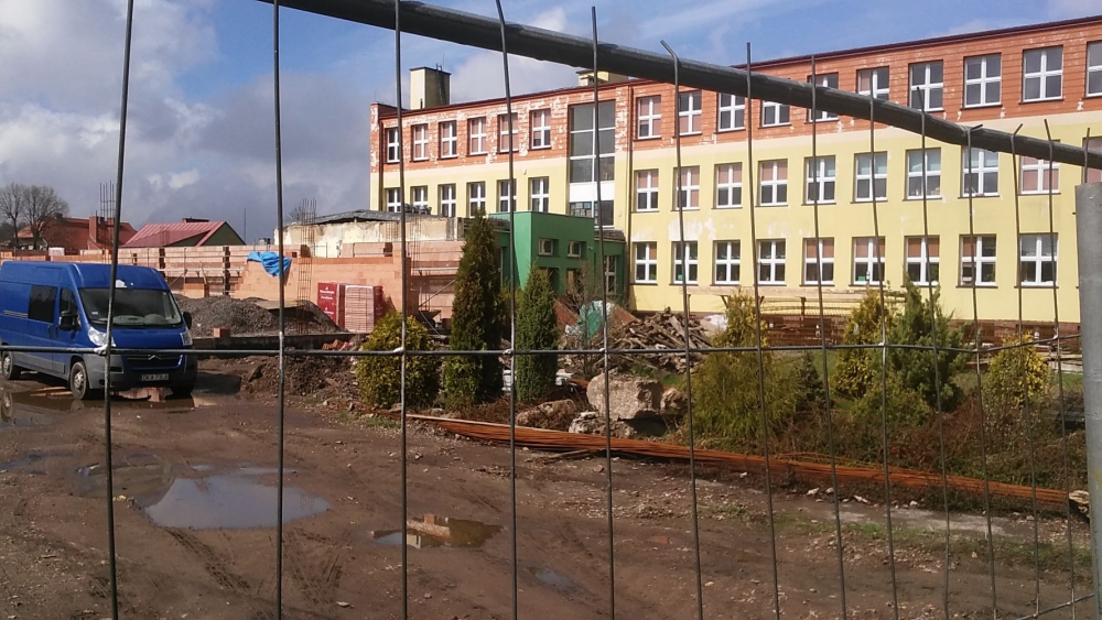 W budynku dobudowanym szkoły są wykonywane prace związane z wykończeniem stanu surowego. Obecnie kładziona jest na pierwszym piętrze instalacja elektryczna a za nią są wykonywane tynki na ścianach a na drugim piętrze wylewana jest posadzka.