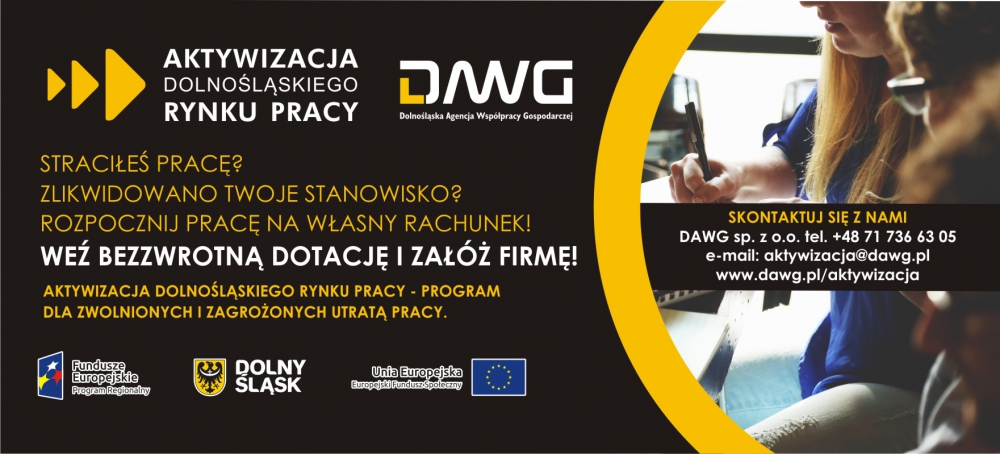 DAWG prowadzi także nabór wniosków do projektu "Aktywizacja Dolnośląskiego Rynku Pracy". Osoby bezrobotne mogą pozyskać środki na założenie własnej firmy, przejść wybrane szkolenie zawodowe czy podjąć podyplomowe studia.