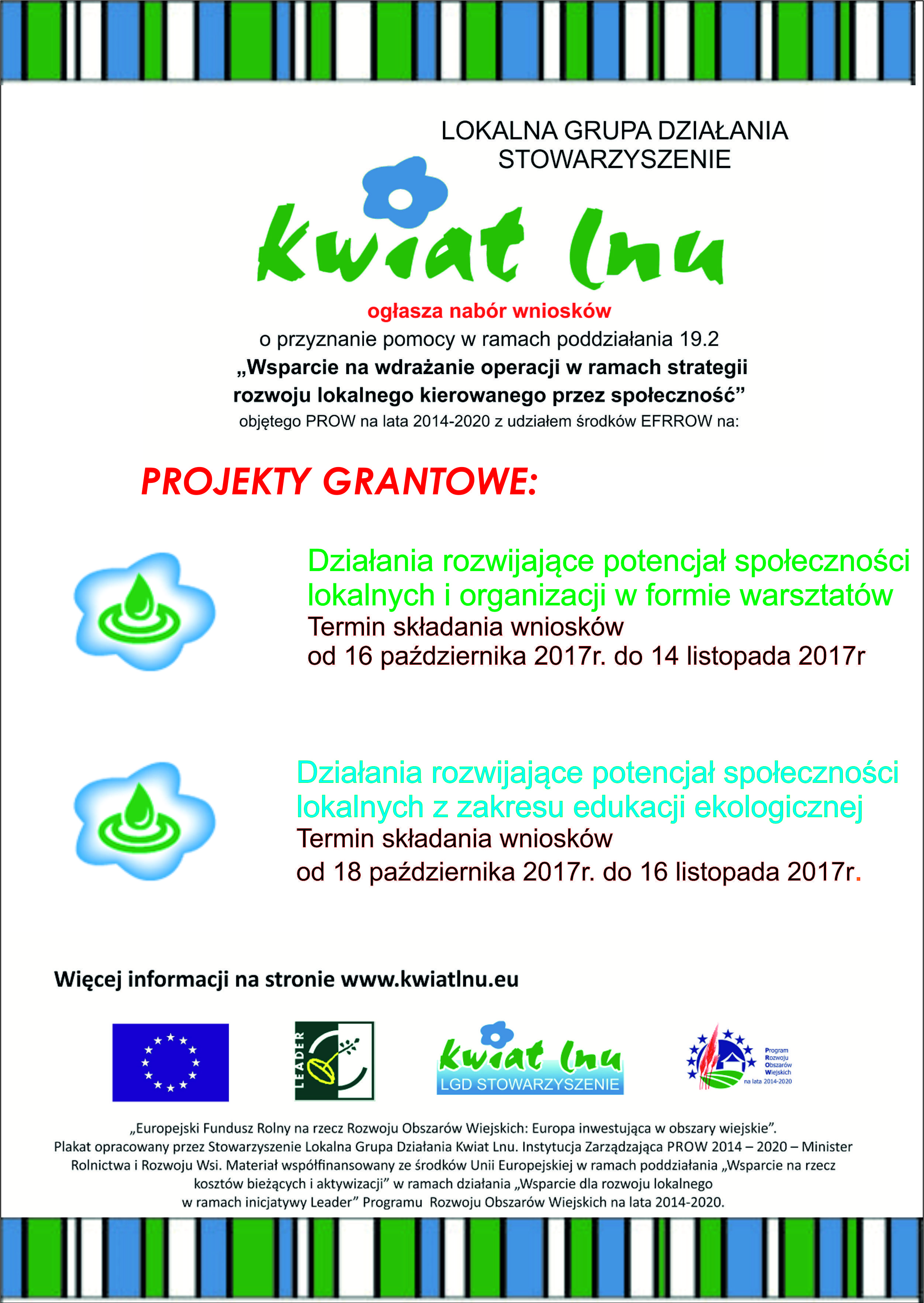 LGD Stowarzyszenie Kwiat Lnu ogłasza nabór wniosków o przyznanie pomocy w ramach programu "Wsparcie na wdrażanie operacji w ramach strategii rozwoju lokalnego kierowanego przez społeczność"
