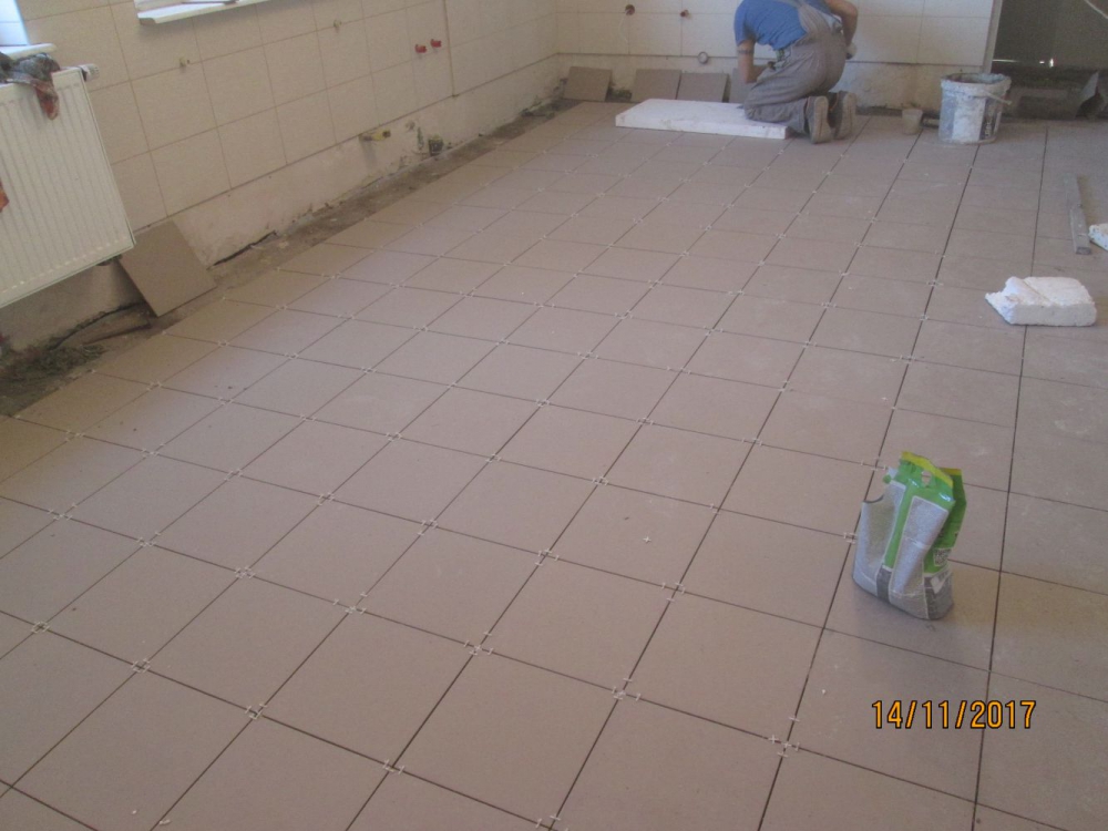 Wewnątrz trwają prace wykończeniowe. Wykonano instalację elektryczną i kładzione są płytki w kuchni.