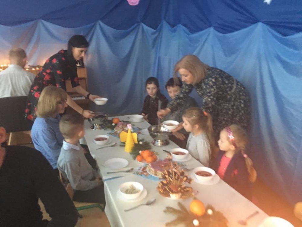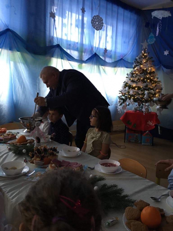 Spotkanie wigilijne w przedszkolu w Chełmsku Śląskim we wspaniałej oprawie świątecznej. Po życzeniach i przełamaniu się opłatkiem wszyscy zasiedli do pięknie przystrojonego świątecznego stołu, na którym znalazły się tradycyjne wigilijne potrawy.