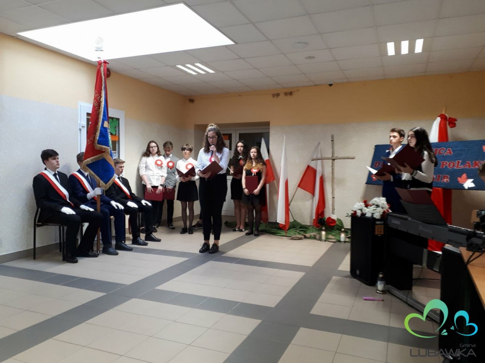 Lubawska młodzież wraz z Gronem Pedagogicznym przygotowali apel w patriotycznej oprwawie a Pan Piotr Zielonka - przewodnioczący Związku Sybiraków odtworzył emocje i odczucia, które towarzyszyły ludziom zesłanym na Sybir przez oprawców wojennych.