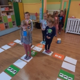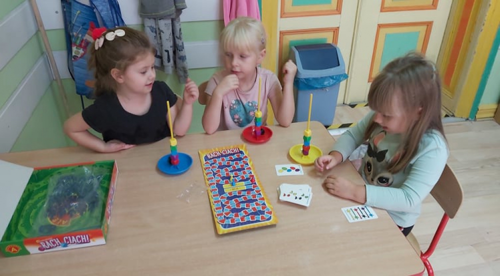 10 października obchodzimy Ogólnopolski Dzień Gier Planszowych. Tego dnia dzieci z grupy Biedronki przyniosły do przedszkola swoje ulubione gry. Grały z kolegami przy stolikach w różne gry. Dla dzieci była również przygotowana podłogowa gra planszowa. Ciesząc się widokiem tak dużej gry z chęcią grały i bawiły się.