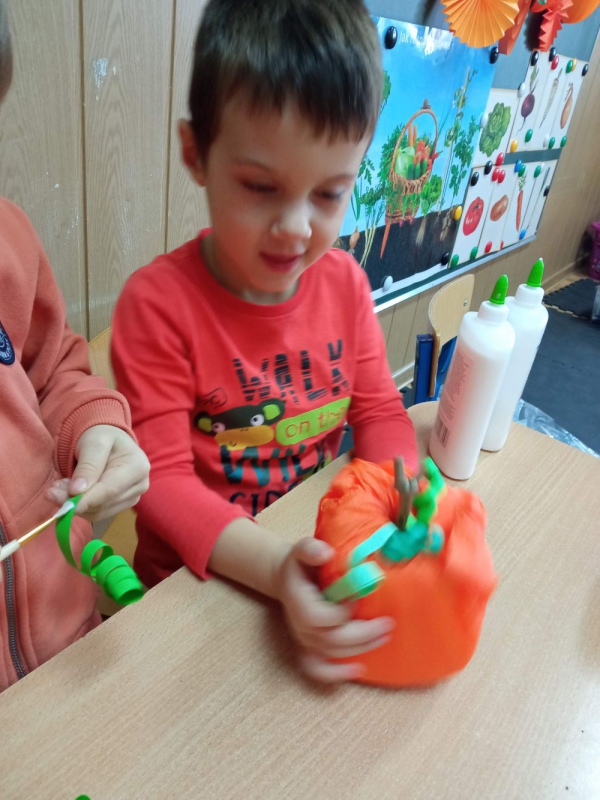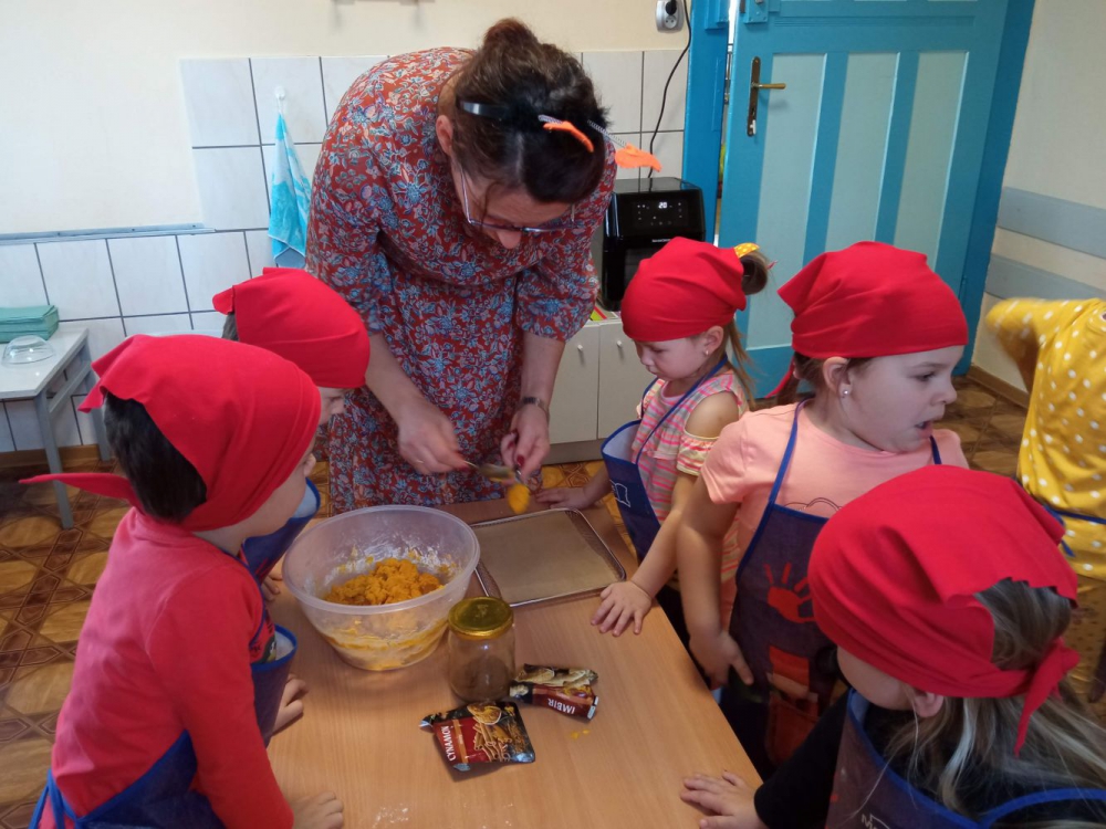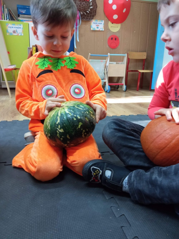 W piątek 29 października przedszkolaki z grupy Misiaki świętowały Dzień Dyni. Dzieci poznały różne gatunki tego warzywa, sposób ich uprawy. Dowiedziały się, że dynia jest bardzo zdrowym warzywem i, że można z niej przygotować wiele dań tj.: pieczywo, zupę, dżem, ciasto, babeczki, przetwory i soki. Dzieci w grupie Skrzaty i Smerfy przygotowały ciastolinę z której powstały piękne dynie. Muchomorki przygotowały dynie przestrzenne, a Misiaki swoim dynią dokleiły oczy i buzie. W tym dniu nie zabrakło potraw z dyni - były babeczki, dyniowe ciasteczka, ciasto, a na obiad pyszna zupa z dyni.