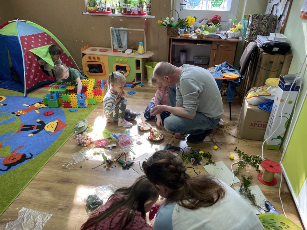 Zajęcia otwarte /MUCHOMORKI/ Dzieci wraz z rodzicami przygotowywali świąteczne stroiki na Wielkanocny kiermasz Galeria zdjęć Małgorzata Jurczak Przedszkole Lubawka Data wydarzenia: 2022-04-13 Stworzony: 2022-04-13 19:49 Edytowany: 2022-04-13 19:51