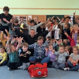 Dnia 19.04.2022 przedszkolaki spotkały się z ratownikiem KPP a zarazem strażakiem w Komendzie Miejskiej Państwowej Straży Pożarnej w Jeleniej Górze. Dowiedziały się jak najszybciej trzeba pomóc poszkodowanemu, co zrobić w pierwszej kolejności. Utrwaliły jakie są numery alarmowe. Zostały uświadamione że każdemu trzeba pomoc.