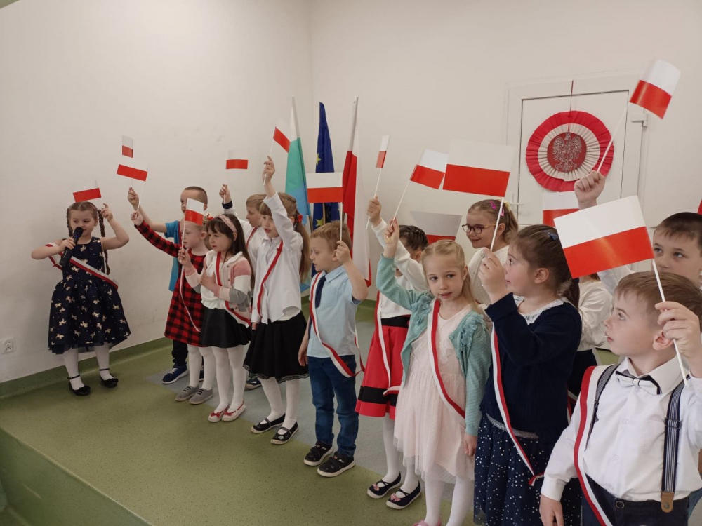 Dzisiaj Tygryski zaprosiły przedszkolaków na program na temat Jesteśmy Polakami. W programie dzieci recytowały wierszyki i śpiewały piosenki o Polsce. Przypomniały polskie symbole narodowe: godło, hymn i flaga.