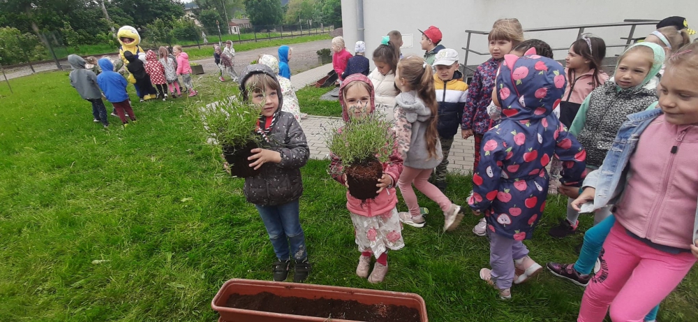 Dnia 27.10.2022 odwiedziła przedszkolaków Mrówka z PSB Pagaz w ramach Wiosny z Mrówka. Przywiozła ze soba krzewy do posadzenia oraz firmowe pamiatki dla przedszkolaków.