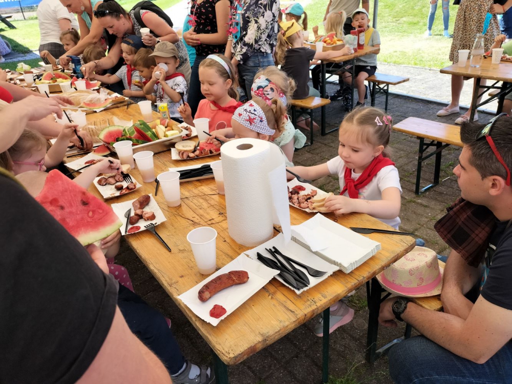 15 czerwca na stadionie w Lubawce przedszkolaki wraz ze swoimi rodzicami świętowały Dzień Rodziny. Każda grupa zaprezentowała przygotowany program artystyczny. Animatorzy zapraszali nas do zabaw tanecznych i konkursów. Bawiliśmy się na dmuchanych zamkach, oglądaliśmy sprzęt strażacki i samochód. Policyjny Komisarz Lew pozował z dziećmi do zdjęć. Jedliśmy kiełbaski z grila a rodzice częstowali pysznymi ciastami.