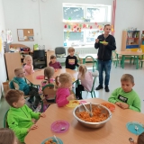 Najlepszym etapem pracy był ten ostatni, czyli degustacja. Witaminami zostaŁ poczęstowany Pan Dyrektor i pracownicy Przedszkola. Surówka wszystkim bardzo smakowała.