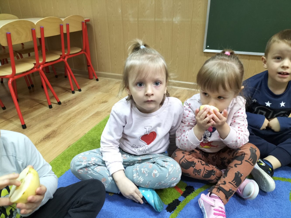 Obchody dnia jabłka w przedszkolu rozpoczęliśmy od rozmów na temat jego wyglądu, koloru, wielkości, kształtu, smaku. Kolejne zabawy w tym dniu dotyczyły też jabłek, były to m.in. zabawy zręcznościowe i ruchowe. Nie zabrakło poczęstunku po którym dzieci przystąpiły do wykonania pracy plastycznej. Dzień jabłkowy - bardzo udany - zachęcamy wszystkich do jedzenia jabłek bo to źródło zdrowia i witam.