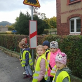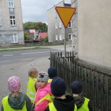 Grupa Tygryski wybrała się na pobliskie skrzyżowanie. Dzieci same mogły obserwować ruch uliczny i znaki drogowe. Wiedzą gdzie i jak prawidłowo przechodzić przez ulicę. Podczas wycieczki przedszkolaki zgodnie z zasadami bezpiecznego poruszania się po drogach ubrane były w kamizelki odblaskowe.