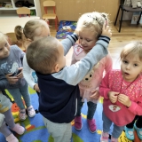 Dziś chłopcy przygotowali dla dziewczynek laurki, zaśpiewali im "sto lat" i poczęstowali je lizakami. Za wysiłek włożony w pracę również otrzymali słodkości. Dziękujemy mamie Małgosi za przekazane słodycze
