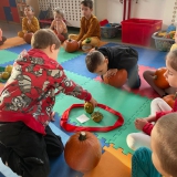 W naszym przedszkolu niewątpliwą gwiazdą tegorocznej jesieni została DYNIA. 28 października Tygryski poznały jak zdrowe i urodziwe jest to warzywo. Dynia zainspirowała nas do wykonania prac plastycznych i zabaw muzyczno-ruchowych. Tego dnia przynieśliśmy do przedszkola dynie i ubraliśmy się na kolor pomarańczowy. ?Dzień Dyni? pozwolił nam poznać wielką różnorodność dyń i wzbogacił naszą wiedzę na ich temat. Wzięliśmy udział w licznych zabawach z udziałem dyni: dyniowa matematyka, wyliczanka, dyniolina i dyniowe pająki. Ten dzień był pełen wrażeń i radości.