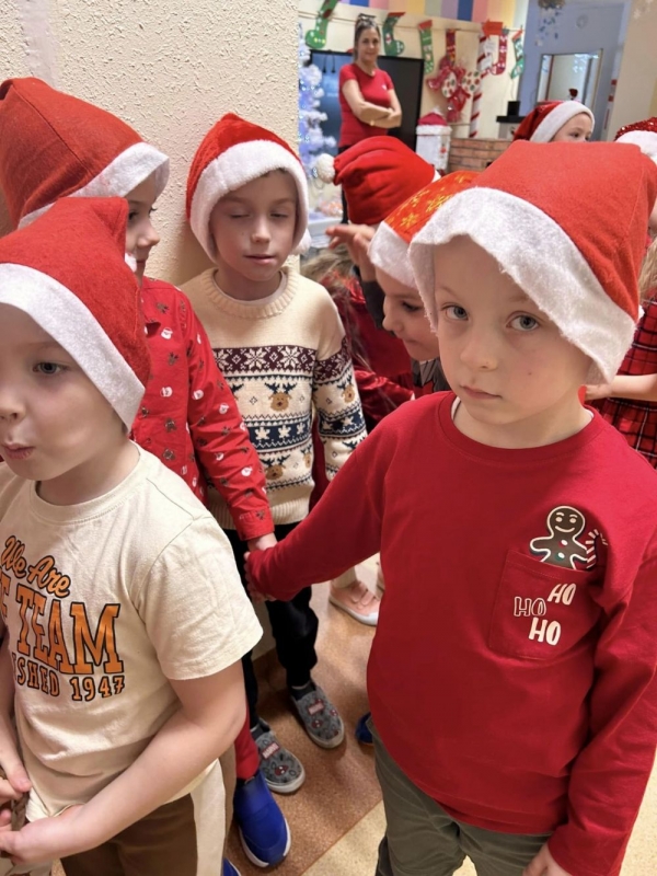 Dzisiaj nasze przedszkole odwiedził bardzo miły i długo oczekiwany gość. Miał czerwony strój, długą, białą brodę, dźwigał na plecach bardzo ciężki worek, a w nim prezenty. To nie mógł być nikt inny tylko MIKOŁAJ- niezwykle wesoły, rozmowny i chętny do wspólnej zabawy i tańca. Spotkanie przebiegało w bardzo radosnej i przyjaznej atmosferze. Przedszkolaki śpiewały Mikołajowi piosenki.