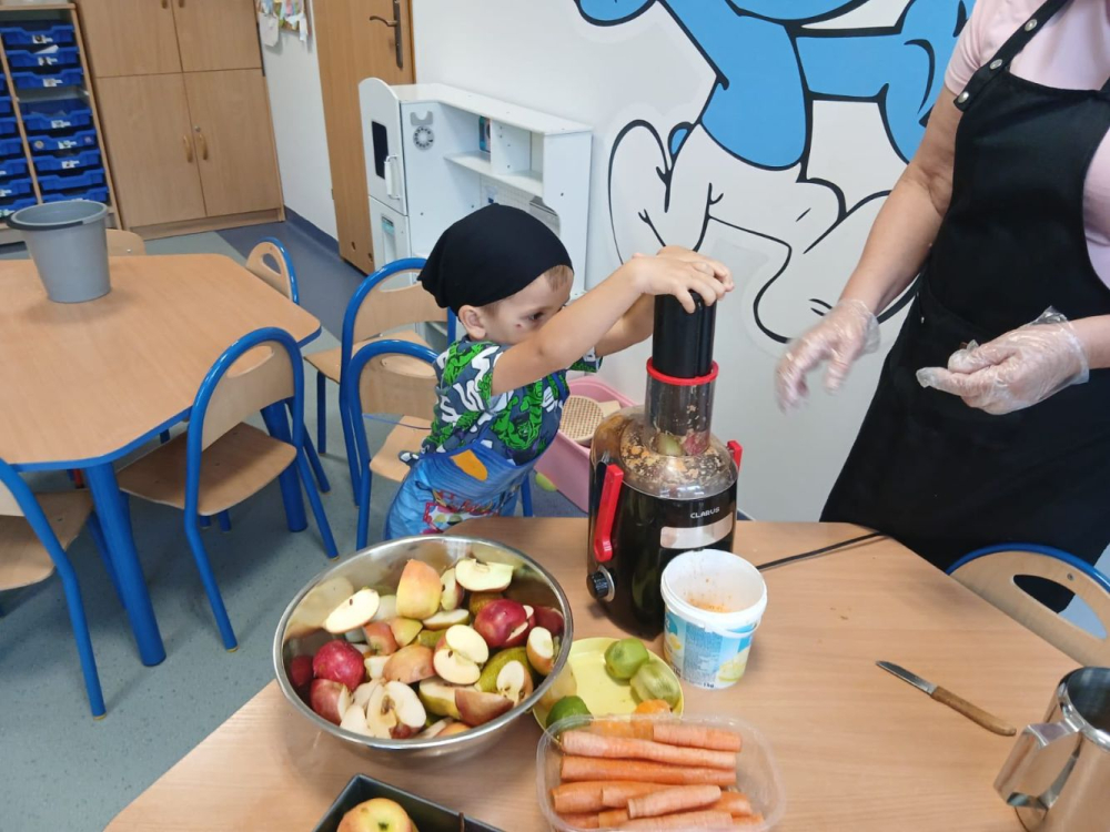 Soczek Smefrów Smerfy wspólnie przygotowały pyszny, witaminowy sok z jesiennych owoców. Było trochę śmiechu, trochę bałaganu i dużo radości! Galeria zdjęć Julita Rysz Przedszkole Data wydarzenia: 2025-09-24 Stworzony: 2025-10-09 09:31 Edytowany: 2025-10-09 10:39