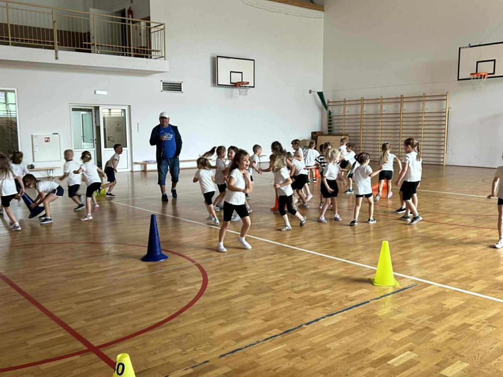 Dzieci z grup ?Tygryski? i ?Skrzaty? z radością oraz dużym zaangażowaniem uczestniczyły w różnorodnych ćwiczeniach i zabawach ruchowych, rozwijających sprawność oraz koordynację.