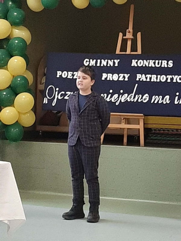 Za nami Gminny Konkurs Recytatorski Poezji i Prozy Patriotycznej "Ojczyzna niejedno ma imię". Uczniowie zmierzyli się w dwóch kategoriach wiekowych. Wśród uczniów klas 4-6 laureatami zostali: Jakub Kawalec z Chełmska Śląskiego, Veronika Mazgaj z Lubawki, Wiktoria Kowalska z Chełmska Śląskiego, Zuzanna Matusik z Chełmska Śląskiego, Stanisław Stach z Lubawki i Julia Kowalska z Miszkowic. Szczególne wyróżnienie uzyskała Veronika Mazgaj. Laureatami klas 7-8 zostali: Kacper Ozgowicz z Miszkowic, Tytus Podgórski z Chełmska Śląskiego i Bożena Cebula z Lubawki. Gratulujemy zwycięzcom i życzymy dalszych sukcesów.